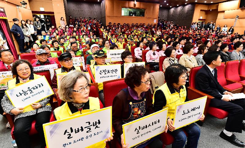 [미디어타임즈=문상수 기자] 부평구(홍미영)는 지난 18일 오후 구청 7층 대회의실에서 노인사회활동지원사업 참여자 300여명이 참석한 가운데 ‘2017년 노인사회활동지원사업 발대식’을 가졌다.이날 행사에는 부평구청, 부평구노인인력개발센터, 부평구노인복지관, 부평중부종합사회복지관, 갈산종합사회복지관 등 5개 노인일자리사업 수행기관이 한 자리에 모였다.발대식에서는 부평구 노인사회활동개발센터 경과보고, 수행기관별 사업소개 및 퍼포먼스, 결의문 낭독 등이 진행됐다.올 부평구 노인사회활동지원사업은 노노케어, 꿈나무지킴이, 실버글벗도우미 등 지역사회 공익증진을 위한 공익활동형과 공동작업장 및 제조판매, 카페 어울림 등 지속적․생산적 일자리 창출이 가능한 취․창업형 두 가지 유형으로 나뉘어 실시된다. 부평구 어르신들께 총 31개 사업, 3,071개 일자리가 제공됐다.홍미영 부평구청장은 인사말을 통해 “올해는 지난해보다 143명을 늘려 노인일자리를 창출했다”며 “앞으로도 어르신들의 지속적인 사회 참여 활동을 지원, 건강개선․사회적 관계 증진 및 소득 보충 등 건강하고 활기찬 노후생활을 영위할 수 있도록 다양한 노인사회활동지원 사업을 발굴해 부평구 노인복지 향상에 힘쓰겠다”고 밝혔다.이번 행사는 노인사회활동지원사업 참여자의 자긍심과 근무의욕을 높이고 노인사회활동지원사업에 대한 지역주민 관심을 유도하기 위해 마련됐다.