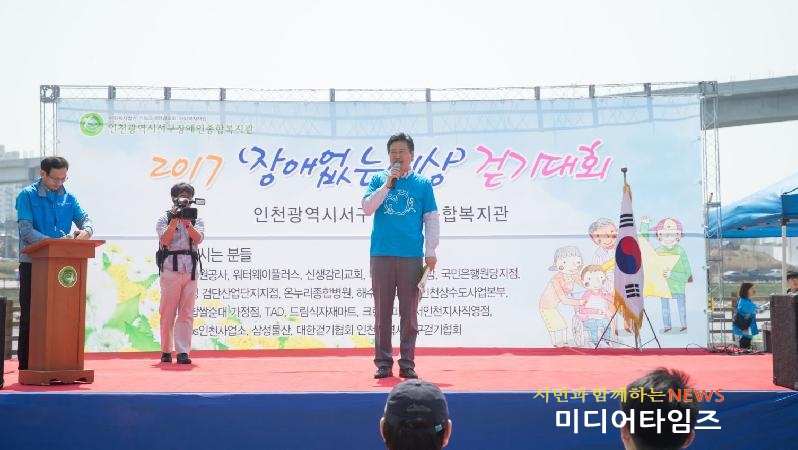 [미디어타임즈=홍기연 기자] 인천 서구(청장 강범석)는 지난 15일 경인아라뱃길 시천공원에서 장애인복지관(관장 이덕호) 주관으로 ‘2017년 장애 없는 세상 걷기대회’를 개최했다.