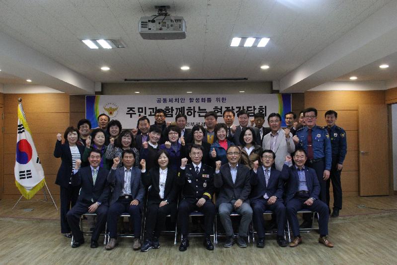 [미디어타임즈=문상수 기자] 김봉운 부평경찰서장은,지난 19일 동암지구대를 방문하여 공동체 치안을 위한 주민들과의 현장간담회를 실시했다. 이 날 간담회는 십정1,2동 주민센터장, 자율방범대 등 협력단체장, 통·반장 등 주민 30여명이 참석한 가운데 부평경찰서의 치안정책 소개 후 주민 건의사항 및 토론 등을 통해 각 종 현안에 대한 개선방안을 문답형식으로 진행했다.김봉운 경찰서장은, “동네 청소년 우범지역 및 범죄취약지에 대한 순찰 강화 요청 등 주민들의 요구사항을 즉각 수렴하고 개선방안을 모색하는 한편, 앞으로도 부평경찰서 관내 모든 지역관서를 방문하여 주민과의 대화를 통해 공동체치안을 위해 최선을 다하겠다.”고 말했다.