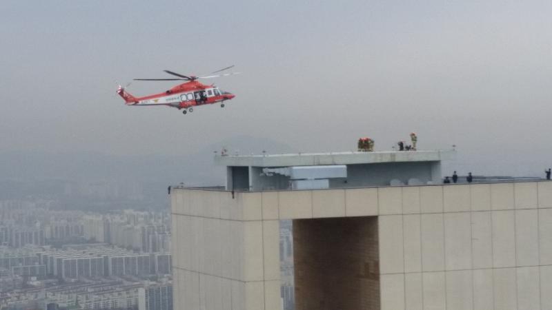 | 합동으로 초고층건축물 특수재난 대비 현지적응훈련 모습. |