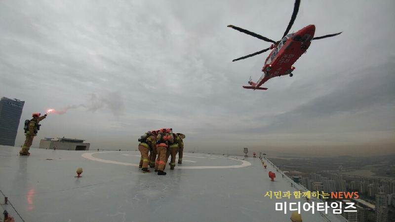 [미디어타임즈=문상수 기자] 인천소방본부(본부장 정문호)는 20일 연수구 송도 포스코 더 샾 퍼스트월드(64층)에서 공단소방서와 합동으로 초고층건축물 특수재난 대비 현지적응훈련을 실시했다. 이번 훈련은 도시기능 집중화로 증가되는 초고층 건축물의 재난발생 방지를 위해 체계적인훈련을 통한 대응능력 강화와 인명 및 재산피해를 최소화 하고자 이루어졌다.훈련내용은 ▲자위소방대 훈련 상황전파 ▲인명구조 및 대피유도 ▲재난발생 대비 인명구조 전문성 강구 ▲인명대피 곤란지역에 대한 다양한 구조방안 등으로 119특수구조단․공단소방서․건물관계자 등 유기적인 협조로 훈련효과를 극대화 했다.소방본부 관계자는 “초고층건축물 특수재난 대비 현지적응훈련으로 대원들의 구조능력을 향상시킬 것”이라며, “앞으로도 지속적인 교육훈련을 통해 구조대원의 전문능력을 키워나가겠다.”고 전했다.
