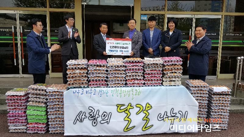 | 인천중앙성결교회 달걀 전달 사진. <ⓒ미디어타임즈> |