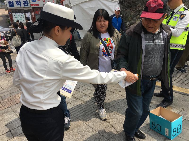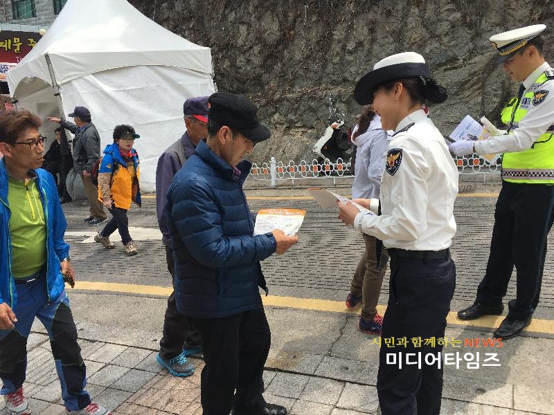 | 교통안전을 위한 홍보 전단지를 배부하는 모습. <ⓒ미디어타임즈> |