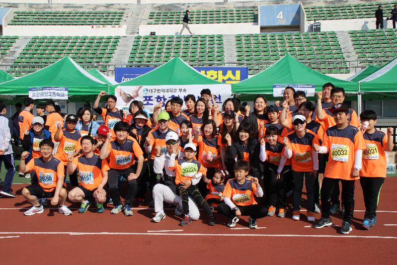 대구한의대학교 부속 포항한방병원(병원장 최해윤)은 지난 23일 민주평화통일자문회의와 포항시협의회에서 주최하는 제 17회 통일기원포항해변마라톤대회에 참여하였다. 이날 포항한방병원은 교직원들과 가족을 포함하여 총 100여명이 참가하고, 마라톤 참가자들을 위하여 슬러시, 솜사탕, 한방차 및 음료 등 푸짐한 먹거리를 제공하였다. 완주 후에는 포항한방병원 부스에 모여 도시락을 나눠 먹고 행운권 추첨 등 다양한 행사를 진행하여 친목을 다지고 즐거운 시간을 보냈다. 최해윤 병원장은 “화창한 봄날, 가족과 교직원들이 다 함께 단합 된 시간을 가질 수 있어서 뜻깊은 자리가 되었으며, 마라톤 행사를 통해 즐거운 날이 되어서 좋았고, 다음 행사를 기약하며 개개인의 건강관리를 철처히 하여 다음 대회에는 더욱더 분발하여 즐거운 시간을 갖도록 하자"고 밝혔다.