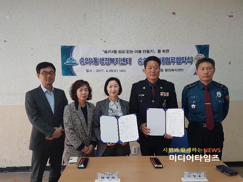 | 숭의4동 범죄 없는 마을 업무협약 모습. <ⓒ미디어타임즈> |