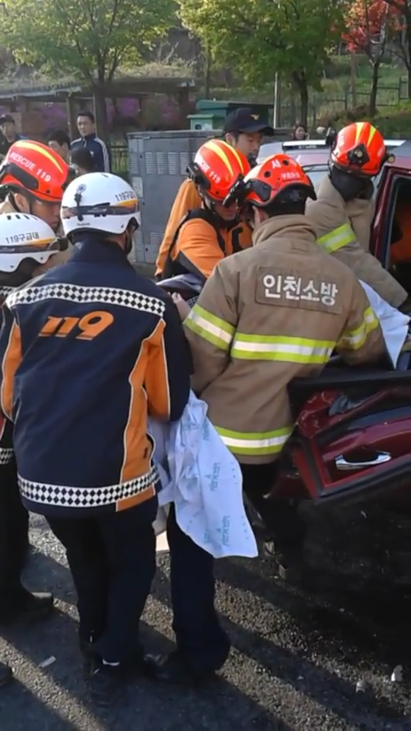 | 인천서부소방서 교통사고 신속한 구조 모습. <ⓒ미디어타임즈> |