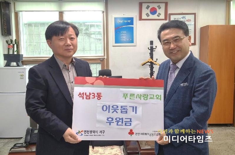 [미디어타임즈=홍기연 기자] 인천 서구 석남3동에 소재한 푸른사랑교회(목사 남근형)는 지난 28일 석남3동에 불우이웃돕기 성금 100만원을 기부했다.