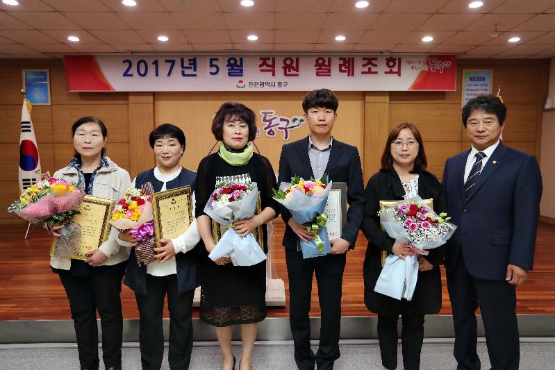 [미디어타임즈=문상수 기자] 이흥수 동구청장은 1일, 구청 대회의실에서 전 직원과 함께 5월 월례조회에 참석했다.이날 월례조회에서는 모범공무원, 모범선행시민, 모범통장에 대한 표창 수여식이 진행됐으며, 이 구청장은 “이번 달은 제2회 동구 어린이 Dream Festival, 제28회 화도진 축제가 개최가 예정되어 있는 만큼 성공적인 축제 개최를 위해 직원 여러분들이 더욱 열정을 갖고 업무에 임해주기 바라며, 또한 직원들도 가족들과 행사에 참여해 즐거운 시간을 보내길 바란다”고 말했다.또한 “제19대 대통령 선거를 앞두고 공직자들이 선거분위기에 편승하여 선거중립을 훼손하거나 공직기강 해이 사례 등이 발생하지 않도록 특별히 유념하길 바란다”고 당부했다.