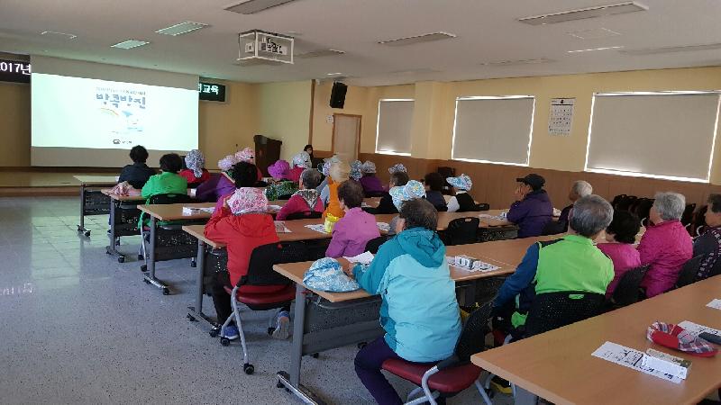 [미디어타임즈=문상수 기자] 옹진군(군수 조윤길)은 지난달24일부터 2017년도 노인사회활동지원사업 참여자 1,020여명을 대상으로 안전교육을 실시하고 있다. 이번 교육은 점점 심해지는 미세먼지로 인해 참여 어르신의 건강관리를 위해 미세먼지의 유해성 및 대응요령과 작업 도중 발생할 수 있는 교통사고를 미연에 방지하고자 교통사고 유형별 방어요령을 각 면에서 진행했다.옹진군 관계자는“어르신들이 건강하게 활동을 지속할 수 있도록 치매예방 등 건강교육은 물론 아동학대 예방교육, 장례문화교육 등 다양한 교육을 실시할 계획이다”라고 밝혔다.