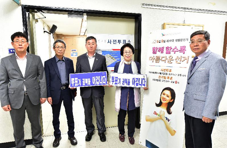 | 제19대 대통령선거 부평4동 사전투표소 투표 참여를 독려하는 모습. <ⓒ미디어타임즈> |