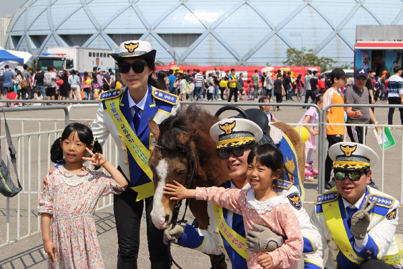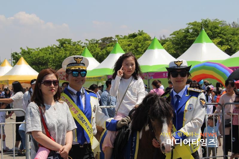 [미디어타임즈=문상수 기자] 인천지방경찰청(청장 박경민) 기마경찰대는지난5일 문학경기장에서 제95회 어린이날 행사에 참여해 어린이에게 잊지 못할 추억을 만들어 주며 가족단위 방문객에게 큰 호응을 얻었다.다양한 프로그램이 진행된 이날 행사에서 말과 함께 행사장을 순찰하는 기마경찰대는 어린이들에게 단연 제일 큰 인기를 얻었으며, 말을 타고 기념촬영을 하는 포토존을 운영하여 가족단위 방문객들에게 좋은 추억을 만들어 주었다. 또한 각종 홍보물을 이용해 3대 반칙행위(생활반칙, 교통반칙, 사이버반칙) 근절을 위한 홍보활동과 건강하고 행복한 가정을 만들기 위한 캠페인도 병행하여 실시하였다.행사에 참가한 어린이 정OO(남동초1)은“말이 이렇게 큰 동물인지 처음 봤다. 직접 만져보고 타고 사진도 찍을 수 있어서 신났다. 큰 말을 타는 경찰관이 멋져 보여 나도 커서 경찰관이 되고 싶다.”고 말했다. 인천기마경찰대장(경감 장석창)은 “어린이가 즐거워하는 모습이 바로 건강한 대한민국의 모습인 것 같다. 시민과 경찰이 친해지는 기회가 되어 뿌듯하며 앞으로도 다양한 시민과 만나 함께하는 경찰이 되도록 노력하겠다.”고 말했다.