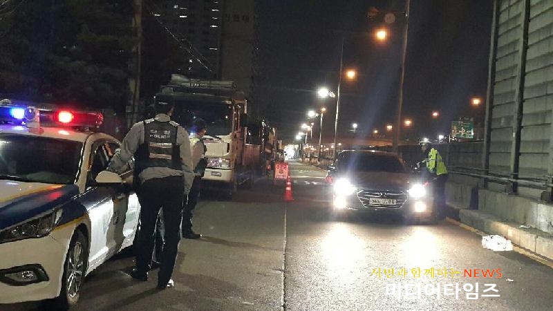 [미디어타임즈=문상수 기자] 가좌지구대(경감 유인식)는,인천서부경찰서 가좌지구대는 지난 8일 관내 음주운전 취약지점을 정하여 음주운전 일제단속을 실시했다. 이번 단속은 5월 17일까지 ‘교통 3대 반칙’ 특별치안 활동 기간으로 정하여 스팟이동식 음주 단속 등 교통안전을 위한 상시 음주단속과 일제단속으로 병행할 계획이며, 또한 음주운전에 취약한 저녁․심야시간대 음주사고 빈발 도로를 중심으로 수시이동식 단속 실시할 예정이다.가좌지구대장은 “아직도 음주운전을 가볍게 생각하는 운전자들이 많은 만큼 이러한 의식을 개선하기 위해 ‘언제, 어디서는 단속된다’는 인식이 정착될 수 있도록 적극적인 음주운전 단속 및 홍보활동을 병행할 계획”이라고 밝혔다.