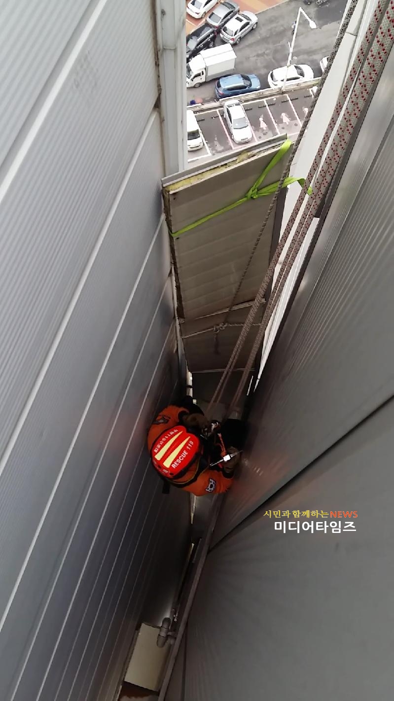 | 강풍 외벽 패널 제거 모습. <ⓒ미디어타임즈> |