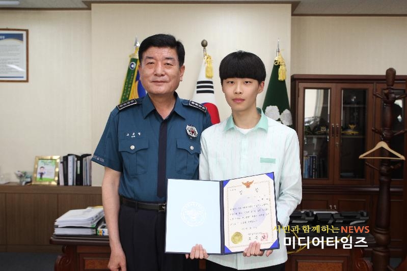 [미디어타임즈=문상수 기자] 인천남부경찰서(서장 조종림)는 제19대 대통령 선거기간 당시, 대선 후보 벽보를 훼손하는 피의자를 신속한 신고로 검거에 기여한 고등학생 박모군(17세)에게 15일 상장(감사장)을 수여했다.박모군은 지난 5월 1일 인천 남구 용현동에서, 학교 등교를 위해 버스를 기다리던 중, 정류장 옆에 있던 대선 후보 선거 벽보를 한 남성이 몰래 훼손하는 것을 목격하자마자, 신속히 112신고를 하면서 검거에 기여했다.깨끗한 선거 문화 정착을 위해 제19대 대통령 선거기간 중 선거사범 수사상황실을 운영하던 남부경찰서 수사과는 박군에게 감사의 표시로 상장을 수여한 것으로 확인됐다.이날, 조종림 서장은, “고등학생임에도 선거벽보 훼손이라는 것이 범죄라는 것을 알고 있던 박군이 기특하며, 훼손자를 목격하고 용기 있게 신고하여 검거에 기여 한 것이 공명한 선거 분위기 조성에 분명 작용했다고 보아 상장을 수여하게 되었다”고 말했다.