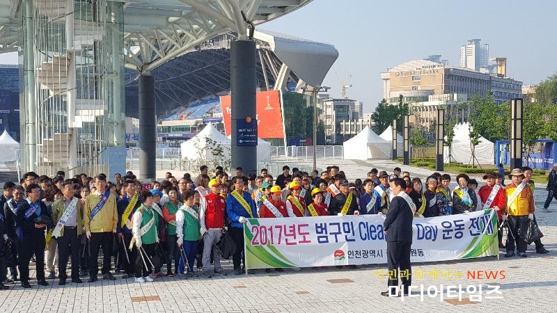 [미디어타임즈=문상수 기자] 인천 중구 도원동주민센터(동장 이덕호)에서는 지난 17일 7시 30분부터 9시까지 도원동 인천축구전용경기장 앞에서 주민자치위원회 등 자생단체 회원과 중구청, 보건환경연구원 소속 공무원 210여명이 클린업데이 운동 일환으로 대청소를 실시했다.이날 행사는 5월 20일부터 열리는 FIFA U-20 월드컵 코리아 2017 대회 축구경기에 대비하여 인천축구전용경기장 주변을 중심으로 날림쓰레기와 벽보 등 불법광고물을 수거하였으며 청결위식 고취와 생활 쓰레기 분리배출에 대하여 주민계도도 병행하여 실시하였다.도원동주민센터에서는 FIFA U-20 월드컵 코리아 2017 대회가 끝나는 6월 11일까지 지속적으로 대청소를 실시할 계획이다.
