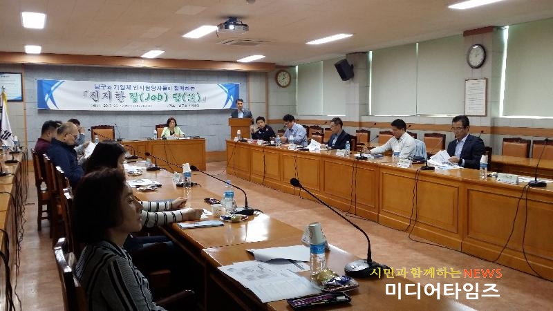 [미디어타임즈=문상수 기자] 인천 남구(구청장 박우섭)는 지난 17일 구청 소회의실에서 지역 내 강소기업체 인사담당자들과 간담회를 개최했다.‘진지한 잡(job)담(談)’이라는 주제로 진행된 기업간담회에는 이건산업, 핸즈코퍼레이션, 서울엔지니어링 등 12개 남구 강소기업체 인사담당자와 남구청 일자리정책과 소속 직원 등 20여명이 참석했다.간담회에서는 현 산업동향별 채용현황과 기업체 고용관리, 그에 따른 고충사항을 청취하고 고용 유지율을 높이기 위한 개선방안과 기업이 원하는 구인조건, 여러 가지 채용현안들을 논의했다.간담회는 구와 기업체간 상호 이해, 협력적 관계를 구축하고 기업체와 구직자를 고려한 잠재적 일자리 수요처 발굴을 도모, 미스매칭을 예방할 수 있는 계기를 마련하는 자리가 됐다.구 관계자는 “앞으로도 기업체와 지속적인 구인정보 교류를 통해 지역 수요를 감안한 구인처 발굴을 활성화하겠다”며 “구민의 일자리 창출을 위해 더욱 노력하겠다”고 말했다.