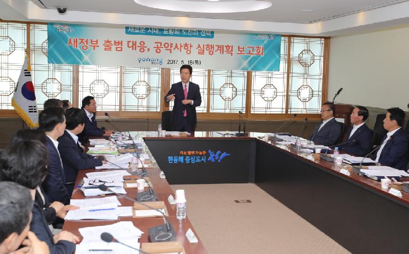 포항시가 새정부 공약사항에 대한 전략과 대응방안 마련에 어느 도시보다 발 빠른 대처로 분주하다. 지난 10일 새정부 출범 대응 긴급 간부회의에 이어, 18일 중회의실에서 ‘4대 비전, 12대 공약, 30대 세부 과제’ 관련 실행계획 보고회를 갖고, 정부 정책수립 단계에서부터 포항시의 각종 현안사업이 반영될 수 있도록 부서별 협업·융합·창의적 역량을 집중키로 했다. 이날 보고회에서는 12개 국·소·원에서 현 정부의 국정기조인 일자리 창출과 민생경제, 복지시책 등을 중심으로, 부서별 선거공약 분석을 통해 현 시책방향, 향후 주요대응 과제 발굴을 통한 신규 사업 및 공모, 국비사업화에 초점을 맞췄다. 이날 보고회에서는 포항시는 더불어민주당 선거공약내 포항지역의 국정과제 건의사업이자 새정부의 미래성장 동력 확충 공약에 발맞춰, 가속기 기반 신약개발 프로젝트 규모 확대와 글로벌 바이오 오픈-이노베이션센터 건립 등의 국제적 연구산업기지화의 당위성을 피력키로 했다. 특히, 포항지역은 국가가 정책적으로 1조원대의 정부예산 투입, 3대 가속기가 밀집된 곳이자, 4세대 방사광가속기 건설은 2007년 포스코 파이넥스 준공식에 참석한 노무현 전 대통령시절 신속건립 지시가 있었던 사업이기도 하다. 아울러, 제조업 부흥과 주력산업 경쟁력 강화 공약과 연계해 포항 철강산업 국제경쟁력 강화 프로젝트에 선제적으로 대응하는 한편, 자연·사회적 재난예방 공약과 관련, 현재 추진 중인 국민안전로봇 프로젝트와 동남권 지진단층 융합연구센터 구축 등과 연계, 영일만 3산단내 동해안 종합재난본부 설치를 신규 사업으로 검토하고, 국민안전 확보를 위한 대재난안전로봇산업 중심지로의 강점을 부각시켜 나갈 방침이다. 문재인 대통령 1호 ‘일자리 공약’관련, 대통령 직속 ‘국가 일자리 위원회’구성을 참고해 지역내 가칭 ‘포항시 일자리위원회’를 구성, 정부의 청년 일자리, 창업에 박자를 맞춰 갈 예정이며, 산업단지 활성화 방안 마련 공약과 연계해 향후 산업단지 환경개선 정부합동 공모사업시 지역내 20년 이상 노후 산단과 연접한 공업지역을 포함한 사업의 확대를 중앙정부에 건의키로 했다. 또한, 새정부가 일자리 공약과 함께 중점을 둔 민생복지와 관련, 국공립어린이집 확충 등을 비롯 25개 공약을 분석해 복지예산 증가에 대비하고 정부의 미세먼지 대책 관련 학교 미세먼지 측정기 설치와 생활 속 미세먼지 측정기 설치 등 신규 예산확보에 적극 나서는 한편, 새정부 ‘도시재생 뉴딜’과 현재 추진중인 도시재생사업과의 지속성을 확보해 나갈 계획이다. 이강덕 포항시장은 “새정부 출범에 맞춰 공약사항을 전 직원이 숙지하고, 공모사업 및 국비확보의 연결고리를 걸 수 있도록 아이템 발굴과 당위성, 확보에 중점을 둘 것”과 “일자리 공약과 관련, 관주도의 지금까지 시책으로는 시민을 만족시킬 수 없으며, 앞으로 정책추진시 협치 체제속에서 시민체감형 정책을 발굴할 것”을 주문했다. 한편, 이날 보고회에서 발굴된 20여개 각종시책은 향후 분야별 산·학·연·관 전문가의 자문을 거쳐 공약사업으로 구체화해 나갈 계획이며, 경북도와 협의를 통해 중앙부처에 건의할 예정이다.