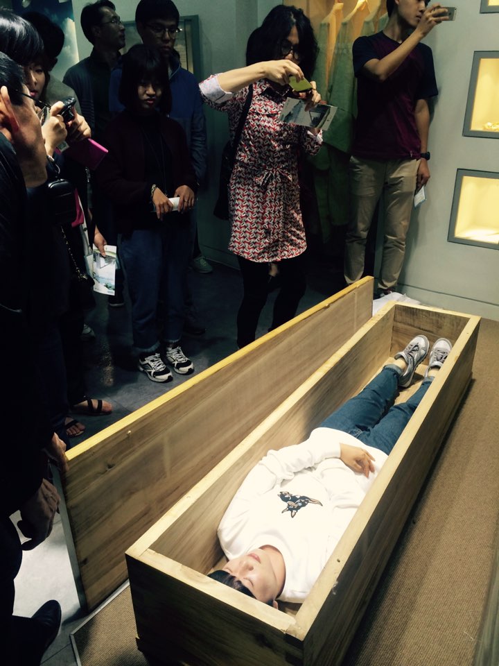 | 중국 연변과학기술대학교 학생들이 광명메모리얼파크 전시관을 방문해 ‘삶과 죽음에 대한 의미’를 되새기며 한국의 장례문화를 체험하고 있다. |