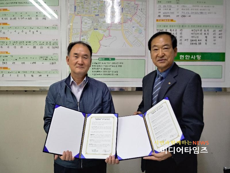 | 석암 신협과 ‘신생아 생애 첫 통장 업무협약’을 체결모습. <ⓒ미디어타임즈> |