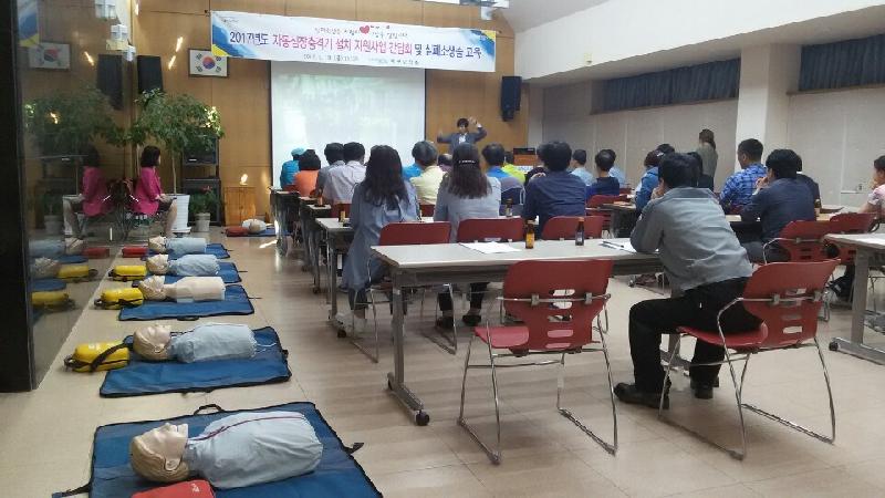 포항시 북구보건소는 최근 북구보건소 3층 연오랑홀에서 500세대이상 공동주택 관리소장 및 주민대표 40여명을 대상으로 자동심장충격기 설치지원사업 간담회 및 심폐소생술 교육을 실시했다. 자동심장충격기 설치 지원사업은 응급의료에 관한 법률 제47조의2(심폐소생술을 위한 응급장비 구비등의 의무)에 따라 응급장비 구비 의무대상 시설인 500세대 이상의 공동주택에 우선 설치하여 갑자기 발생할 수 있는 주민의 심정지 응급상황에 자동심장충격기 사용 및 심폐소생술 실시로 신속히 대처함으로 병원응급 이송 전 골든타임 응급조치로 귀중한 생명을 살리기 위한 지원사업이다. 북구보건소는 포항 북구 관내 500세대 이상 공동주택 42곳 중 작년까지 24곳에 자동심장충격기를 설치했다. 올해에도 국비지원 예산확보로 13곳 공동주택에 신규 설치 지원함으로써 전체 500세대 공동주택 대상 42곳중 37대 지원으로 88% 높은 설치율을 보이고 있다. 이어 2018년에도 미설치 대상지역 수요주사를 통하여 예산확보로 500세대 이상 공동주택에 자동심장충격기 설치를 완료할 계획이다. 앞으로도 “사람이 사람을 살리는 안전지대로” 상설운영 심폐소생술 교육센터를 통하여, 시민 누구나가 응급상황시 소중한 생명을 살리기 위한 심폐소생술 및 자동심장충격기 사용 교육사업도 지속 확대해 나갈 계획이다. 북구보건소는 관계자는 “갑작스러운 심정지 환자가 발생했을 경우 처음 목격하는 사람이 가장 중요하므로 공동주택 등에 비치된 자동심장충격기 사용에 많은 관심과 이용을 바란다”고 말했다.