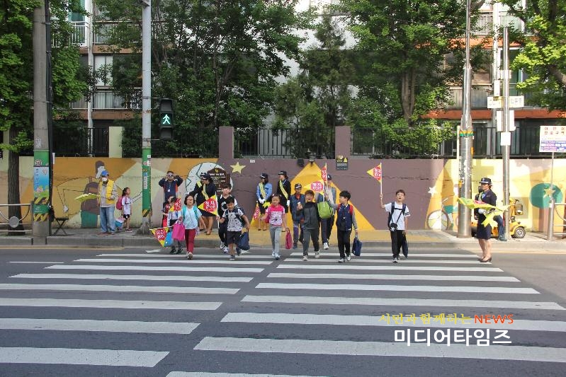 [미디어타임즈=문상수 기자] 인천서부경찰서(서장 조은수)는,지난24일 석남초등학교에서 경찰, 녹색어머니회 등 40여명이 참석한 가운데 등굣길 안전깃발 캠페인을 실시했다. 이 캠페인은 운전자들에게 시각적인 효과를 높여 보행자의 안전을 확보하고자 진행했다.서부서 교통안전계장은 ‘아이들의 등굣길이 위험요소에 노출되어 있는 만큼 어린이 교통사고 제로화를 위해 지속적인 캠페인 및 교육을 실시하여 교통을 안전한 서구를 만들 것 ’이라고 밝혔다.