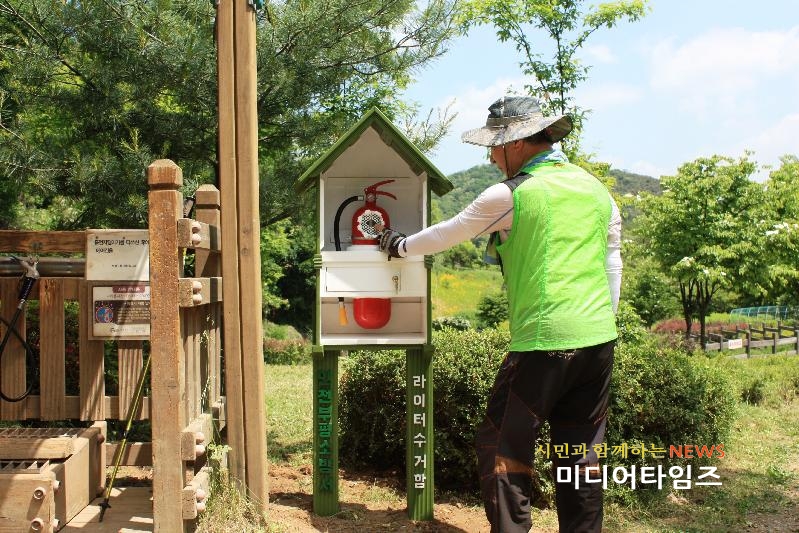 | 산에火내지마세요 라이터 수거함 설치 모습. <ⓒ미디어타임즈> |