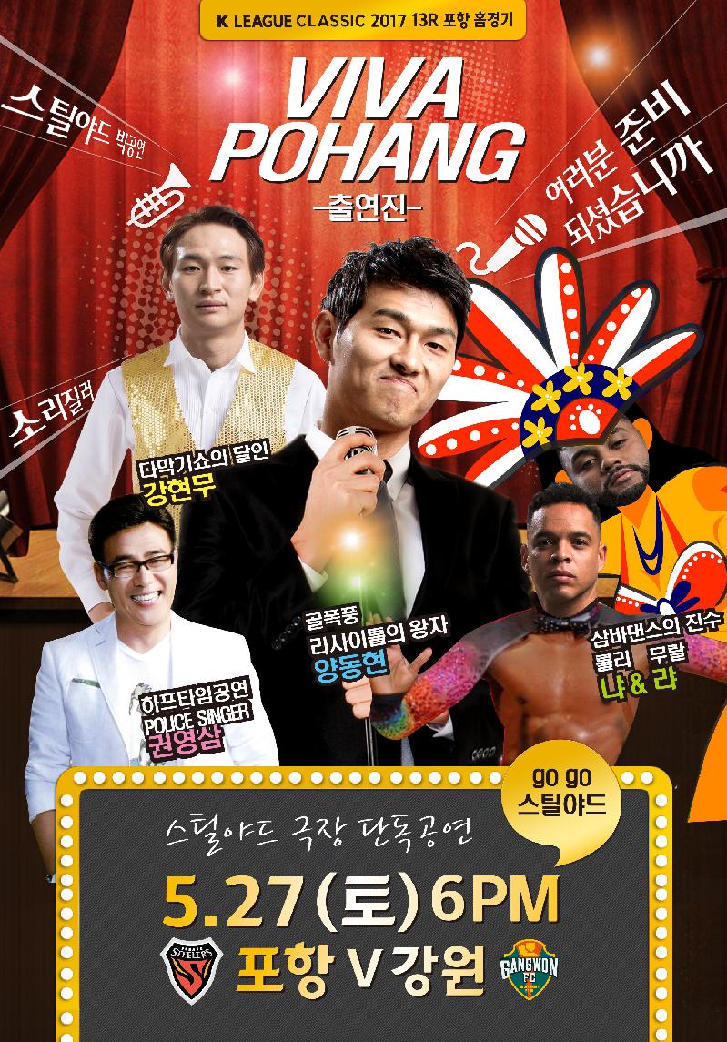 포항스틸러스가 27일(토) 오후 6시 포항스틸야드에서 펼쳐지는 KEB 하나은행 K리그 클래식 2017 홈경기에서 4연승을 노린다. 이 날 경기에는 특별한 손님이 함께한다. 포항은 지난 14일 제주를 상대로 김광석이 터뜨린 역전골에 열광적인 응원을 보내준 이재용 어린이 가족을 초청한다. 경기 전 김광석이 직접 어린이에게 선물을 전달하고, 어린이의 매치볼 전달 및 시축으로 경기를 시작할 예정이다. 또한 포항은 새롭게 리모델링한 서포터즈존을 이번 27일 경기에서 오픈한다. 매 경기마다 열정적인 응원을 보내주는 서포터즈와 팬들이 보다 안전하고 쾌적한 환경에서 경기를 즐길 수 있는 환경을 만들기 위해 진행한 이번 리모델링은, 이강덕 포항시장과 문명호 포항시의장이 건의하고 포스코 포항제철소 안동일 소장의 화답으로 이루어졌다. 이번 리모델링을 통해 더욱 뜨거운 서포터즈의 응원을 스틸야드에서 기대할 수 있게 되었다. 식전 행사로는 포항시읍면동체육회와 업무협약을 체결한다. 이강덕 포항시장, 포항시체육회읍면동협의회 김용희 회장, 이종인 사무국장이 함께 할 이번 업무협약을 통해 포항은 향후 총 8차례에 걸친 홈경기를 ‘포항시민의 날’로 지정해 개최, 각 경기마다 지역 내 읍면동민을 초청하고 지역홍보를 비롯한 다양한 행사를 실시해 포항시민과 함께하는 축제의 장을 만들기 위한 노력을 더해 나갈 계획이다. 경기 전 북문광장에서는 프로축구연맹에서 출시한 ‘K리그 프렌즈’ 게임 홍보부스와 현대자동차 전시부스가 운영되어 경기관람 전 다양한 체험의 기회가 주어진다. 하프타임에는 포항남부경찰서 경찰가수 권영삼의 축하공연이 예정되어 있다. 포항MJ유소년축구클럽 어린이들은 에스코트 키즈 활동을 통해 포항 선수들에게 힘을 불어넣을 예정이다. 한편, 포항은 강원을 안방인 포항스틸야드로 불러들인다. 지난 두 번의 홈경기에서 서울과 제주를 상대로 짜릿한 극장골을 통한 승리를 거머쥐었던 포항은, 이번 강원전에서도 홈 팬들에게 승리의 기쁨을 전하고 4연승을 이뤄내고자 한다. 포항스틸러스 홈경기 티켓은 경기 당일 포항스틸야드 북문과 남문에 위치한 매표소 또는 경기 전 티켓링크(http://www.ticketlink.co.kr/sports/football/74#reservation)를 통해 예매할 수 있다.