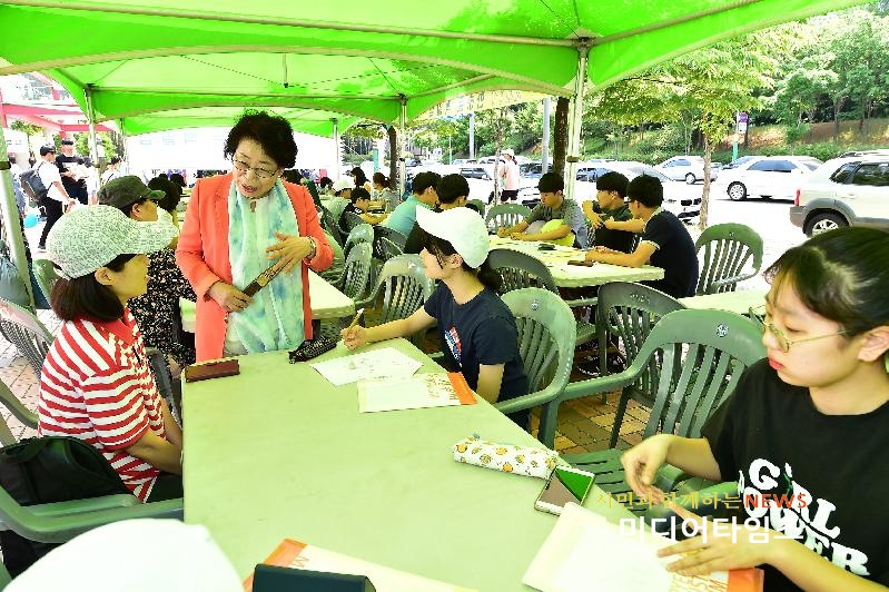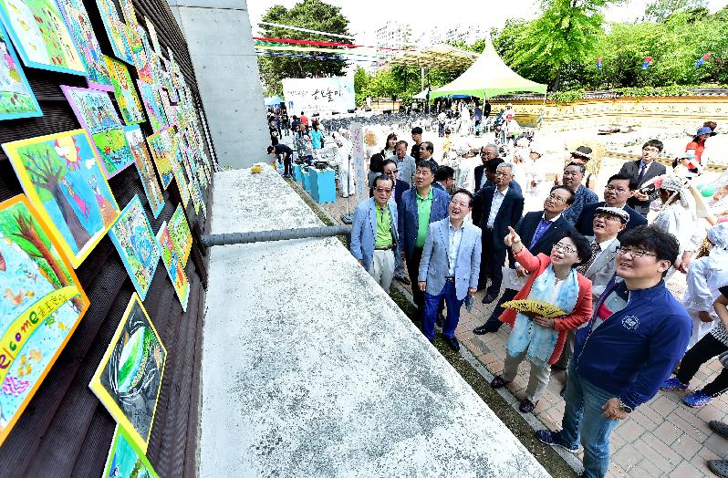 [미디어타임즈=문상수 기자] 홍미영 부평구청장은 지난28일 부평역사박물관 일대에서 부평박물관이 연 ‘부평초록굴포 단오놀이’ 행사에 참석, 축사를 통해 “인천 지역의 단오행사 중 가장 자랑스러운 부평 단오놀이에 올해 처음으로 한하운 시인을 기리는 ‘백일장’까지 더해져 축제가 더욱 풍성하고 의미 있게 됐다”고 강조했다. 홍미영 구청장은 “특히 굴포천이 국가하천으로 승격한 만큼 앞으로 굴포천 주변에서 개최되는 단오행사가 깨끗한 하천을 유지하는 밑거름이 될 것으로 기대한다”고 밝혔다. 단오 행사와 함께 열린 ‘한하운 백일장’에는 인천 지역 중학생 170여명이 참여, 고향, 얼굴, 친구생각, 길, 바람을 ‘시제’로 그동안 갈고 닦은 문학 실력을 겨뤘다. 한하운 백일장은 부평역사박물관이 인천가치재창조 선도 사업으로 공모한 ‘지역문화 활성화를 위한 한하운 재조명 사업’의 일환으로 준비됐다. 이날 행사에서는 부평초록굴포 그림그리기 대회와 인천시무형문화재 공연, 굴포천배 왕중왕 씨름대회, 단오 한복 콘테스트, 가수 길건의 축하 등 다양한 문화예술 공연도 진행됐다.