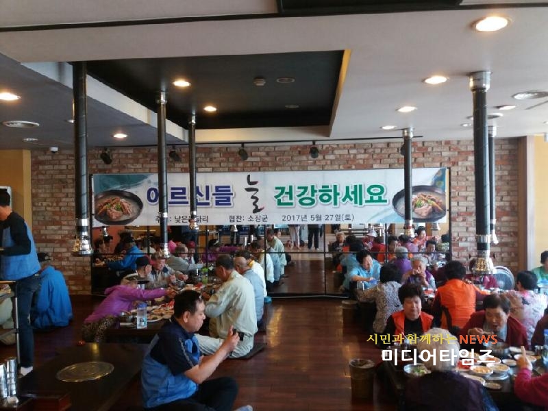 [미디어타임즈=문상수 기자] 인천 남구 주안4동 내 음식점인 소장군은 지난 27일 지역 내 어르신 80여명을 초청, 갈비탕을 대접했다.이날 어르신들은 주안4동 38개 통장들 추천으로 한자리에 모였다.오흥로 소장군 대표는 “한 끼지만 정성을 담아 준비했으니 어르신들이 맛있게 드시고 건강하셨으면 좋겠다”며 “하반기에도 자리를 마련할 예정”이라고 말했다.