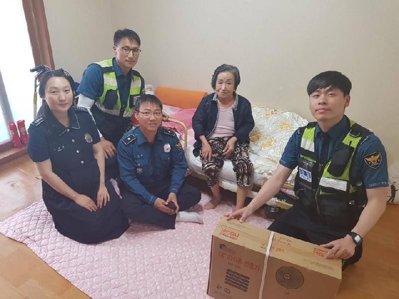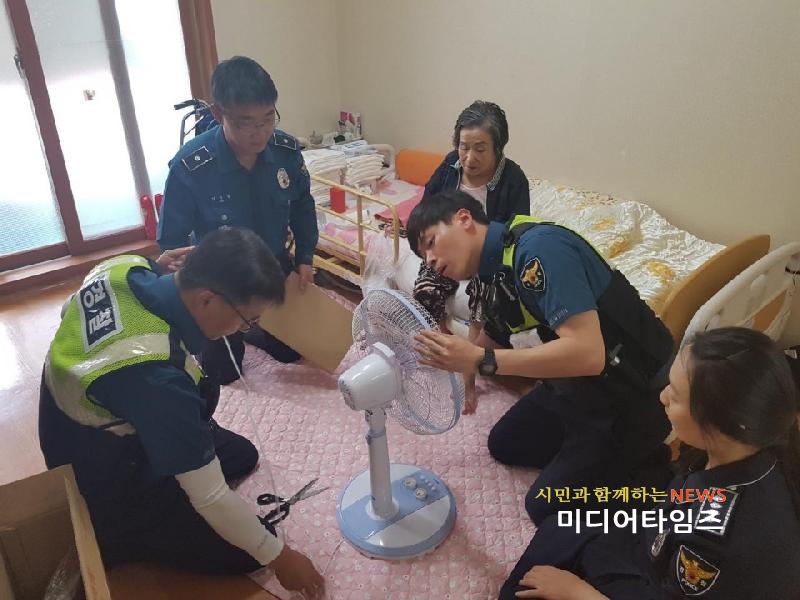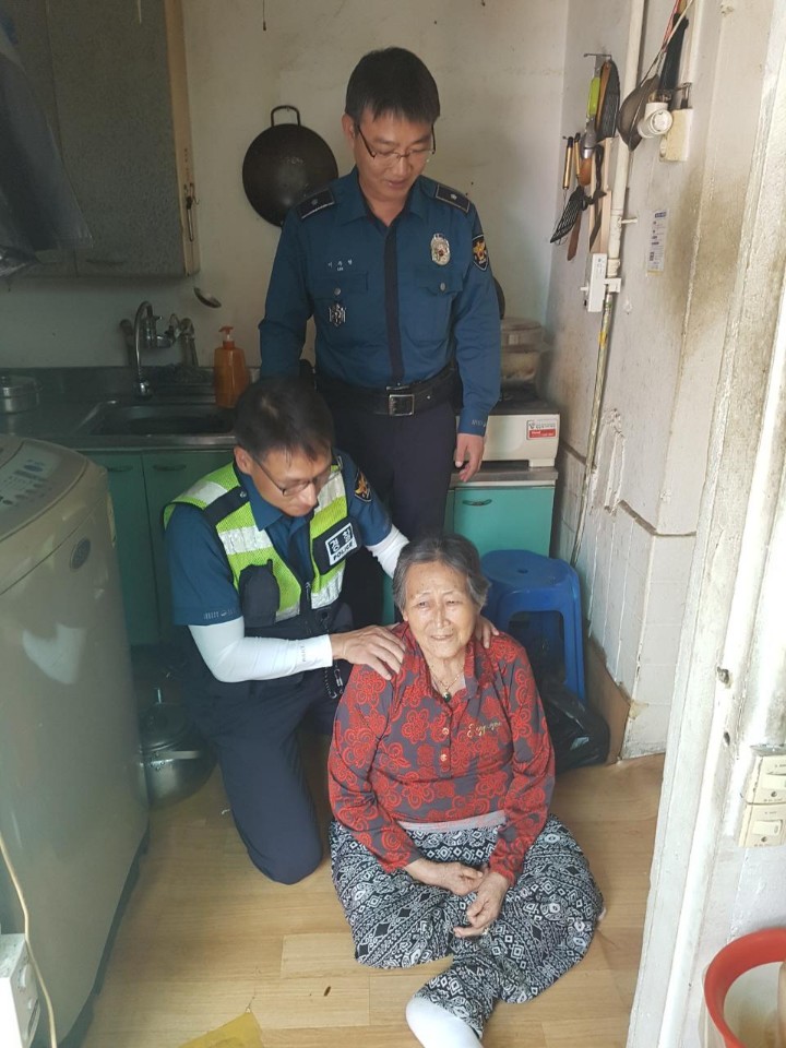 | 석남지구대 순찰4팀이 독거노인분들게 도움을 주는 모습. <ⓒ미디어타임즈> |
