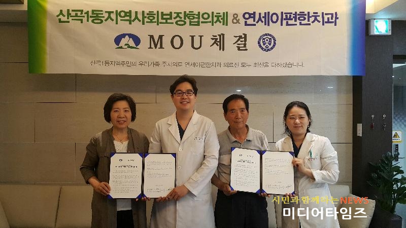 [미디어타임즈=문상수 기자] 인천부평구(구청장 홍미영) 산곡1동 지역사회보장협의체는 2일 연세이편한치과(원장 김진유)와 관내 저소득 의료 취약계층에 대한 ‘치과 무료검진 및 치료 지원’에 대한 협약을 맺었다.이번 협약을 통해 지역 어르신은 물론 자라나는 청소년들의 구강 건강을 위해 충치, 레진, 보철치료 등이 지원되며, 성인의 비보험 스켈링 및 구강 무료검진도 가능해졌다.지원대상은 치과진료가 필요한 저소득층이며 동지역사회보장협의체가 심의․선정하게 된다. 협약 외에 추가되는 비용 또한 협의체를 통해 지원이 결정된다.지역사회보장협의체 공동위원장인 김희순 산곡1동장은 “그간 비싼 치료비 걱정으로 진료를 받지 못했던 취약계층을 위해 엄정하고 공정하게 지원 대상자를 선정할 것”이라며 “지역사회의 훈훈한 지원을 통해 마을 주민들의 건강에 도움이 될 것으로 기대한다”고 밝혔다.