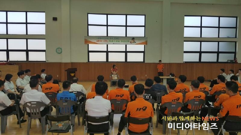 [미디어타임즈=문상수 기자] 인천서부소방서(서장 김준태)는 5일(월) 오전 10시경 2층 대강당에서 전 직원을 대상으로 '4분의 기적, 심폐소생술'에 대한 심폐소생술 숙달 및 제세동기 사용법 교육을 실시했다고 밝혔다. 이번 교육은 소방관들이 심폐소생술을 더욱 숙달하여 각종 사고현장에서 심정지 환자 등 인명사고를 목격 했을 때 신속한 대응으로 응급환자의 소생률을 높이고자 실시하게 됐다. 심폐소생술 교육프로그램의 표준화와 실습위주의 내실있는 교육을 통해 병원 전 단계 심정지 환자에 대한 소생율을 향상시키기 위해 실시하였으며, 심정지 후 4분 이내 심폐소생술을 시행하면 뇌세포의 손상이 지연되고 인명 소생의 가능성이 높아진다.일반적으로 심정지등으로 쓰러진 환자에게 심폐소생술을 1분 이내 실시할 경우 생존율은 97%, 2분 이내는 90%, 3분 이내 75%, 4분 이내는 50%에 이르며, 질병관리본부의 ‘08~’16년 심정지 조사 통계에 따르면 일반인이 심폐소생술을 실시한 경우의 생존 퇴원율은 실시하지 않은 경우 보다 3배정도 높은 것으로 나타났다. 인천서부소방서 관계자는 “이번 전문교육을 통해 소방서 전 직원이 심폐소생술 능력 향상과 위급한 현장에서 신속한 응급처치를 통해 시민들의 생명보호에 앞장서겠다.”고 전했다.한편 지난 2월21일 인천 서부소방서 소방대원이 인천지하철 2호선 전철 안에서 쓰러진 승객을 심폐소생술로 살려낸 사례가 있었다.