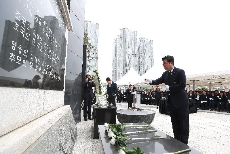 | 6일 오전, 최성시장이 현충탑에서 분향하고 있다. |