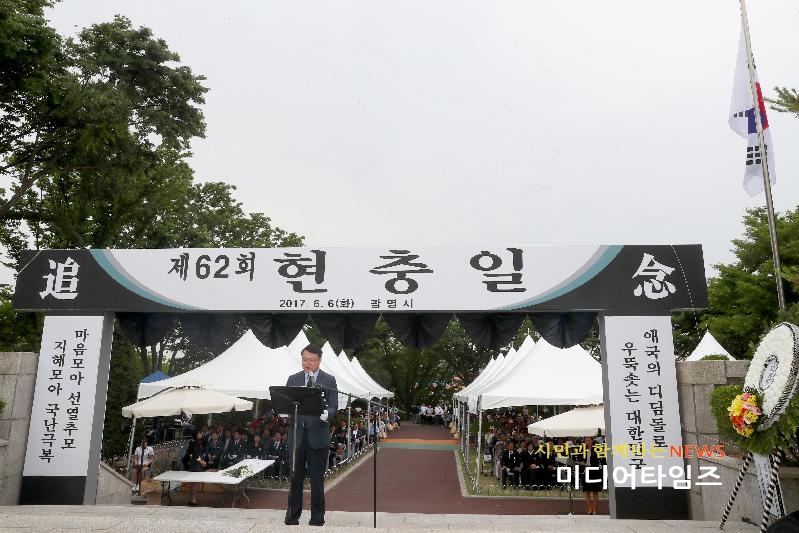 미디어타임즈= 이영희 기자] 광명시는 6일 오전 현충탑(현충근린 공원 내)에서 제62회 현충일을 맞아 순국선열과 호국영령들의 숭고한 희생정신을 기리기 위한 추념행사를 열었다.