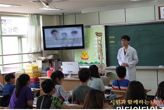 | 척추측만증 예방교육을 하고 있는 재활의학과 김동현원장 |