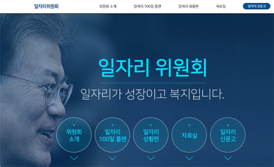 일자리위원회 위원장인 문재인 대통령은 홈페이지 인사말에서 “청와대는 일자리 인큐베이터가 되고, 일자리위원회는 일자리 정책의 컨트롤 타워 역할을 수행할 것”이라면서 “단 1원의 국가예산이라도 반드시 일자리 만드는 것으로 이어지도록 하겠다”고 밝혔다.