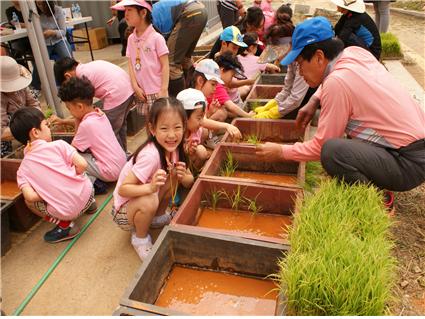이 행사는 관내 어린이집 원생 120명, 바다향기도시텃밭 주민 30명, 주민자치위원회 위원 8명, 어린이집학부모 50명이 참여하였고, 모내기체험은 물론 도심 속에 위치한 텃밭의 농작물과, 생태연못 등을 둘러보는 의미 있는 자연학습 시간을 함께 즐겼다.
