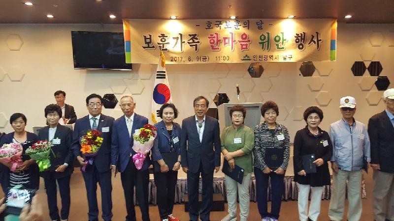 [미디어타임즈=문상수 기자] 인천 남구(구청장 박우섭)는 9일 숭의아레나파크 컨벤션홀에서 ‘보훈단체 격려위안 행사’를 가졌다.6월 호국보훈의 달을 맞아 진행된 행사에는 광복회 인천 남구지회를 비롯한 보훈관련 9개 단체 300여명의 회원들이 참석했다.행사에서는 자랑스러운 국가유공자와 보훈유족 18명에 대한 표창장 수여식도 개최됐다.박우섭 남구청장은 “나라를 위해 희생하신 보훈단체 회원과 가족에게 오늘의 우리가 있게 해준 것에 대해 진심어린 감사와 경의를 표한다”며 “또 다시 이 땅에서 비극의 전쟁이 없도록 유비무환의 정신무장으로 안보태세를 굳건히 하는 계기가 돼야 할 것”이라고 말했다.또 남구가 보훈회원과 가족들에게 최대한 예우를 다할 것을 약속하는 한편 보훈가족이 사회구성원의 일원으로 지역사회 발전을 위해 적극 동참해 줄 것도 당부했다