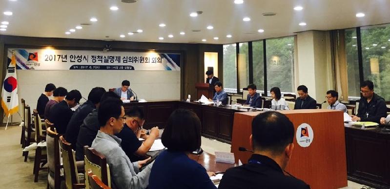 [미디어타임즈= 이영희 기자] 경기도 안성시는 지난 7일 시청 상황실에서 전문가, 주민대표 등으로 구성된 심의위원과 사업별 담당공무원이 참여한 가운데 정책실명제 심의위원회 회의를 개최했다.