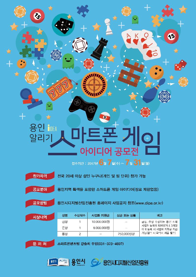 [미디어타임즈= 이영희 기자] 용인시는 디지털산업진흥원에서 용인을 알리는 스마트폰 게임 공모전을 개최키로 하고 7월31일까지 작품을 접수한다고 밝혔다. 스마트폰 게임을 통해 용인의 특색을 알리는 동시에 게임 관련 우수한 인력을 발굴하기 위해서다.