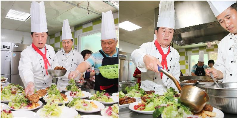 이날 정찬민 이사장은 셰프 복장을 하고 100인분의 함박스테이크를 만드는 데 직접 참여했다. 축구센터 교육생(신갈고)과 직원들은 요리가 준비되는 동안 텃밭농장에 나가 물을 주고 제초작업을 했다.