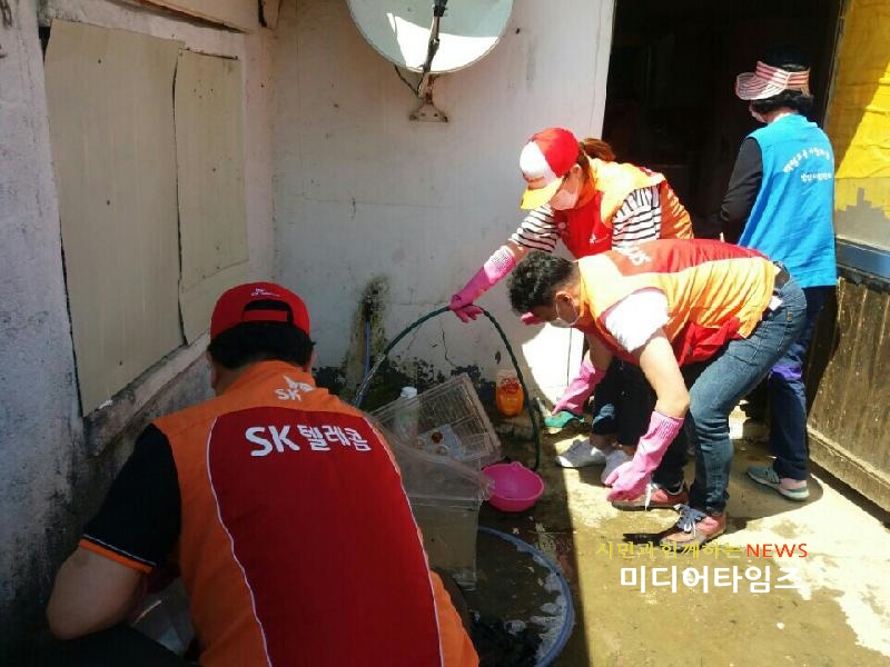 | 백령면 대가을리 장애우 정○○씨댁 방역 및 청소 모습. <ⓒ미디어타임즈> |