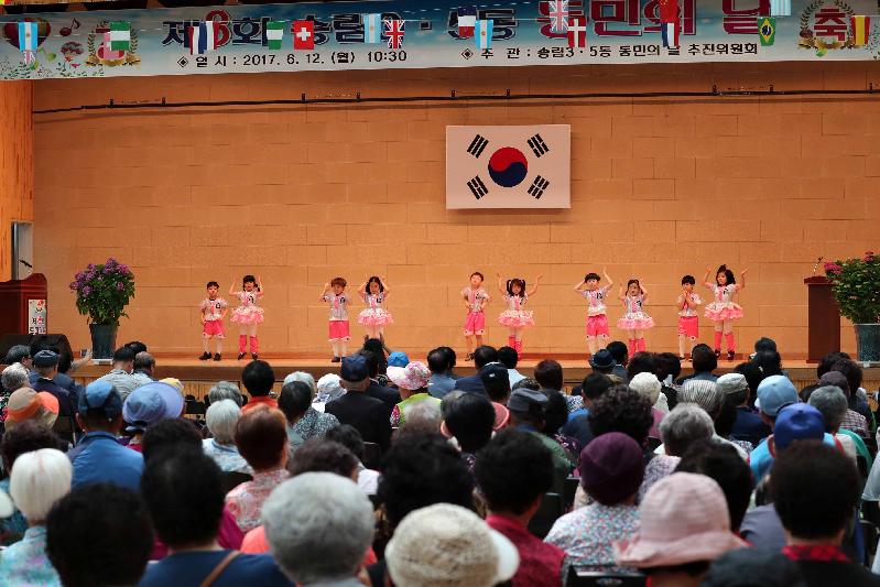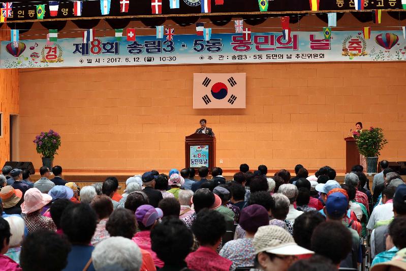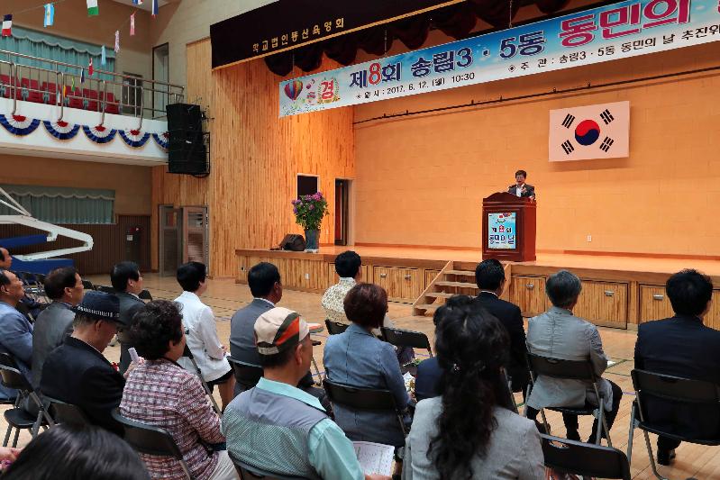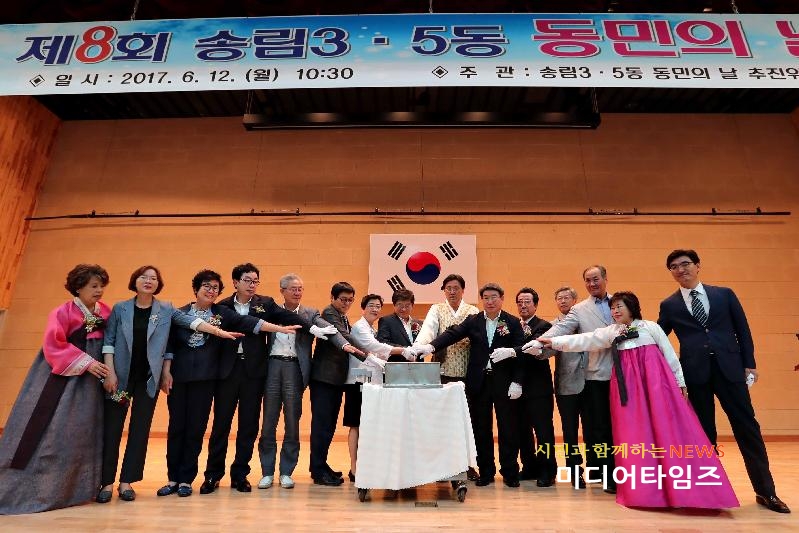 [미디어타임즈=문상수 기자] 인천 동구 송림3·5동(동장 김한필)은 12일, 동민의 날 기념식 추진위원회(위원장 이동균)가 주관하는‘제8회 송림3·5동 동민의 날 기념식’을 동산고등학교 체육관에서 주요 내빈 및 주민 500여명이 참석한 가운데 성황리에 개최했다.올해로 8회를 맞이하는 동민의 날 기념식은 송림3동과 5동이 통합된 날을 기념하고 주민간의 화합을 도모하기 위해 마련됐다.기념식에는 이흥수 동구청장을 비롯한 각계각층의 단체장과 기관장 50여명이 참석해 자리를 빛냈으며, 초대가수 공연과 정원어린이집의 어린이 무용 등으로 축하 분위기를 더했다.이날 행사에서는 다자녀를 출산하고 화목한가정을 이루어 출산 친화적인 사회분위기 조성에 기여한 김영주(남,35)씨에게 자랑스런 동민상이 수여됐다.한편 이날 행사를 주관한 이동균 송림3.5동 동민 화합의 날 추진위원장은 “오늘은 송림3.5동 주민의 화합을 다지고 힘찬 내일을 열어가기 위해 우리 주민들이 함께한 날이다”라며,“송림3.5동 주민으로서 긍지와 자부심을 가지는 귀중한 계기가 됐으면 한다”고 말했다.