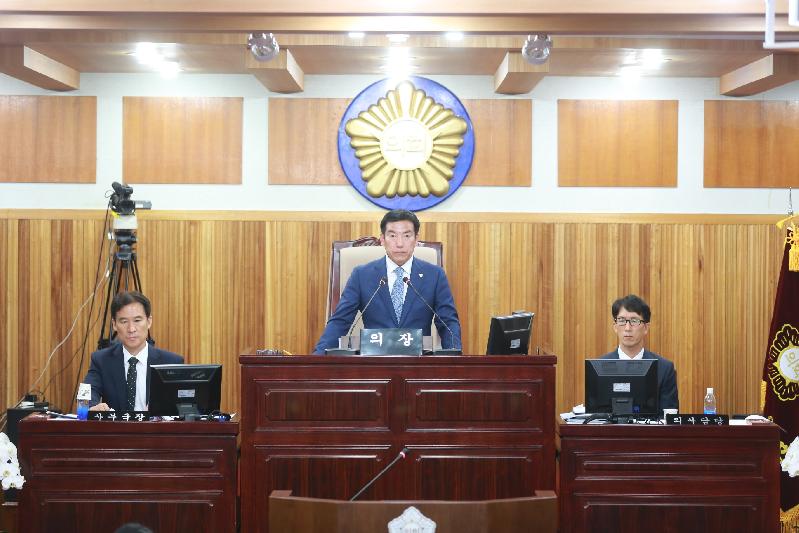 한편, 김윤태 의장은“제7대 후반기가 벌써 1년이 되어가며, 우리 의원들 모두는 늘 초심을 잃지 않는 자세로 시민과 함께 하는 열린 의회를 지향하면서‘대한민국 신성장 경제신도시’건설을 위해 집행부와 함께 노력해 왔다”며 “이제 본격적으로 시작된 여름철 재난 관리 및 AI 비상상황 대비에도 한치의 소홀함이 없도록 힘써 주길 바라며, 이번 회기 중 의원들이 제시한 의견과 대안을 시정에 적극 반영하여 시민의 삶의 질이 향상 될 수 있도록 최선을 다해주길 바란다”고 말했다.