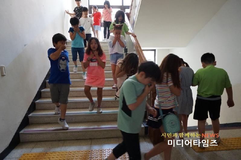| 봉화초교 학생들이 소방훈련 및 안전교육모습. <ⓒ미디어타임즈> |