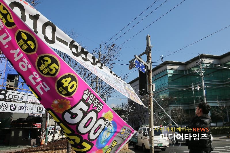 | 불법 현수막 수거모습. <ⓒ미디어타임즈> |