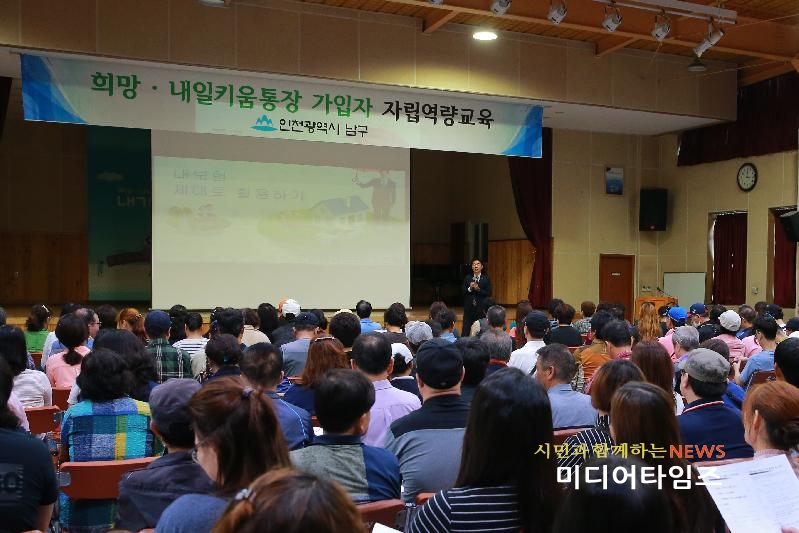 [미디어타임즈=문상수 기자] 인천 남구(구청장 박우섭)는 지난 13일 구청 대회의실에서 ‘2017년 상반기 희망·내일키움통장 가입자 자립 역량 교육을 실시했다.통장 가입자의 올바른 금융지식 습득을 위한 재무교육에는 내일키움통장 가입자 등 600여명이 참석했다. 교육은 국민연금공단 전문강사가 ‘내 보험 제대로 활용하기’라는 주제로 진행됐다.한편 근로활동에 종사하는 저소득층의 자립·자활을 위한 목돈마련 형성을 돕기 위해 운영되고 있는 자산형성사업은 생계·의료수급자 및 차상위계층이 가입할 수 있는 희망키움통장Ⅰ·Ⅱ와 자활사업 참여자를 대상으로 하는 내일키움통장 등 3종류가 있다.사업은 가입자 본인이 매월 일정금액을 저축하면 국가에서 장려금을 지급, 만기후 함께 수령할 수 있게 하는 형식으로 운영되고 있다.구 관계자는 “일하는 저소득층의 빈곤층 조기탈피와 자립지원을 위해 신규가입자 모집 홍보 및 가입자에 대한 맞춤형 금융재무교육 실시 등 다양한 방면으로 내실 있게 사업을 운영할 수 있도록 노력하겠다”고 말했다.