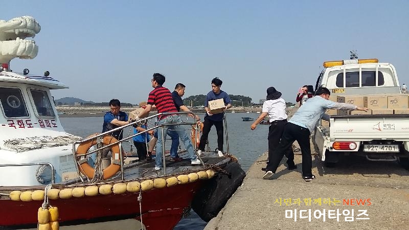 [미디어타임즈= 이영희 기자] 화성시 맑은물사업소가 15일 가뭄으로 어려움을 겪고 있는 입파도를 찾아 한국수자원공사로부터 지원받은 생수 2,000병을 긴급 전달했다.