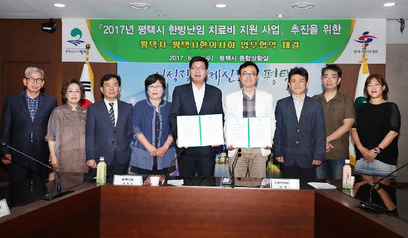 평택시는 평택시 한의사회의 협력으로, 6천만예산을 확보하여(평택시3천만 원, 한의사회3천만 원) 한방치료 진료비 지원 사업을 추진하며, 1인당 치료비는 200만원 (약제비, 침, 뜸 등) 범위 내에서 지원할 계획이다.
