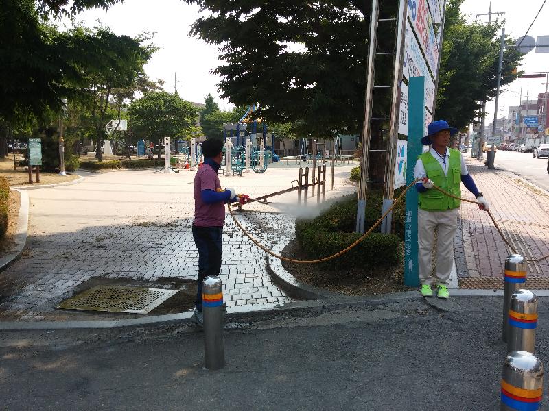 통복동 통장협의회와 주민센터 직원 10여명이 참여한 이번 물주기 작업은 연일 폭염과 가뭄으로 공원 내 수목이 고사될 것을 우려해 차량에 물탱크를 장착한 후 수목에 충분한 물주기 및 잡초 제거를 실시했다.